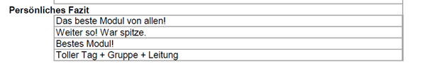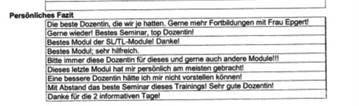 Hier können Sie nachlesen, was mir Teilnehmende in den Freitext der Feedbackbögen geschrieben haben.